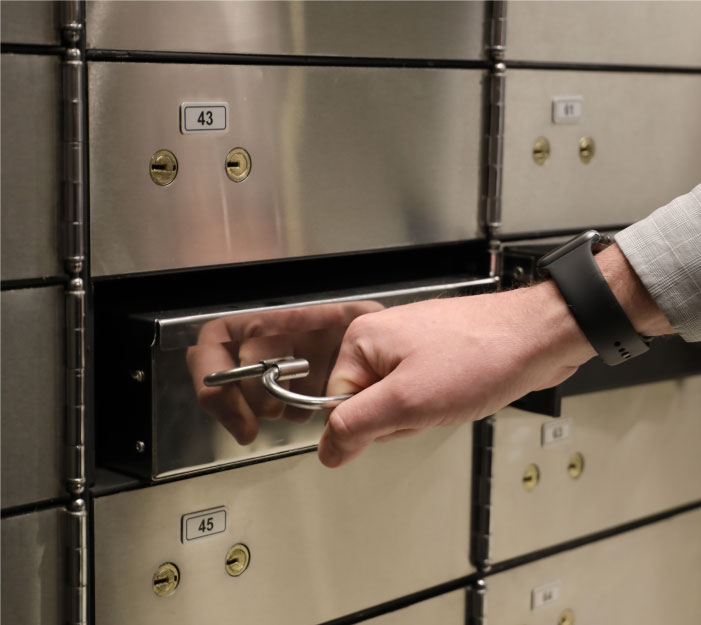 Acesse sozinho a sala de abertura do seu cofre particular e guarde seus bens e documentos com total sigilo.
